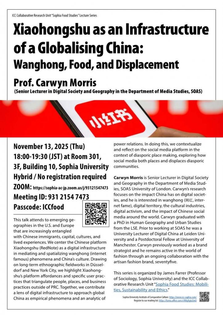 Xiaohongshu as an Infrastructure of a Globalising China: Wanghong, Food, and Displacement