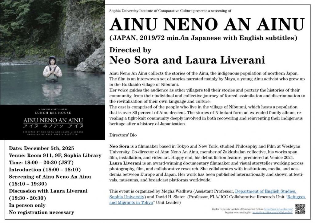 ・Screening of Ainu Neno An Ainu (18:10 – 19:30)