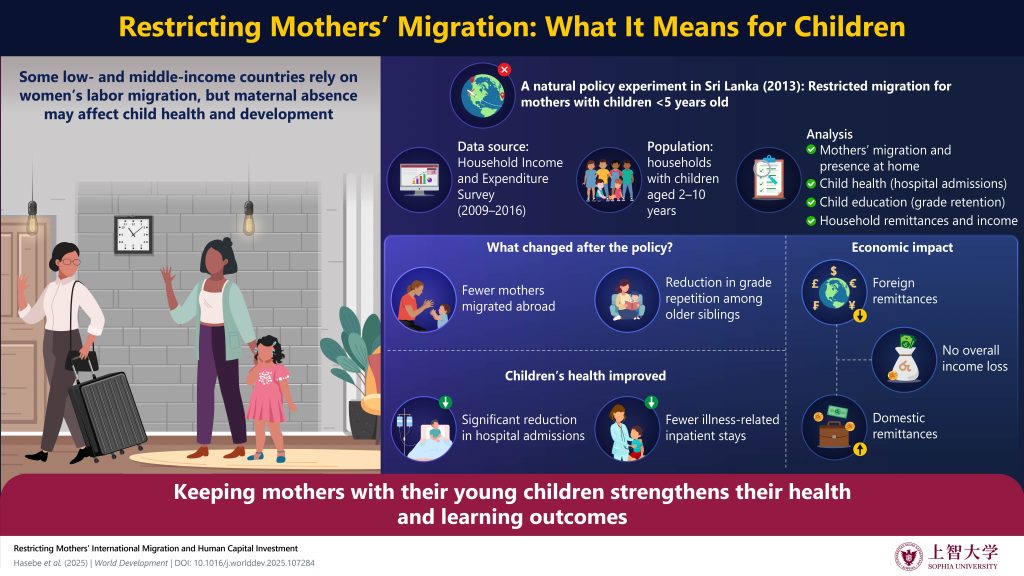 A new study made available online on December 13, 2025, and published in Volume 200 of the World Development journal on April 1, 2026, examines this question by analyzing a migration policy introduced in Sri Lanka in 2013. The policy restricted mothers with children under 5 years of age from migrating overseas for work. By comparing families affected by the policy with those who were not, the researchers assessed its impact on children’s health, education, and household income. The study was led by Associate Professor Takuya Hasebe from Sophia University, Japan, with co-authors Yuma Noritomo from Cornell University, USA, and Bilesha Weeraratne from the Institute of Policy Studies, Sri Lanka.