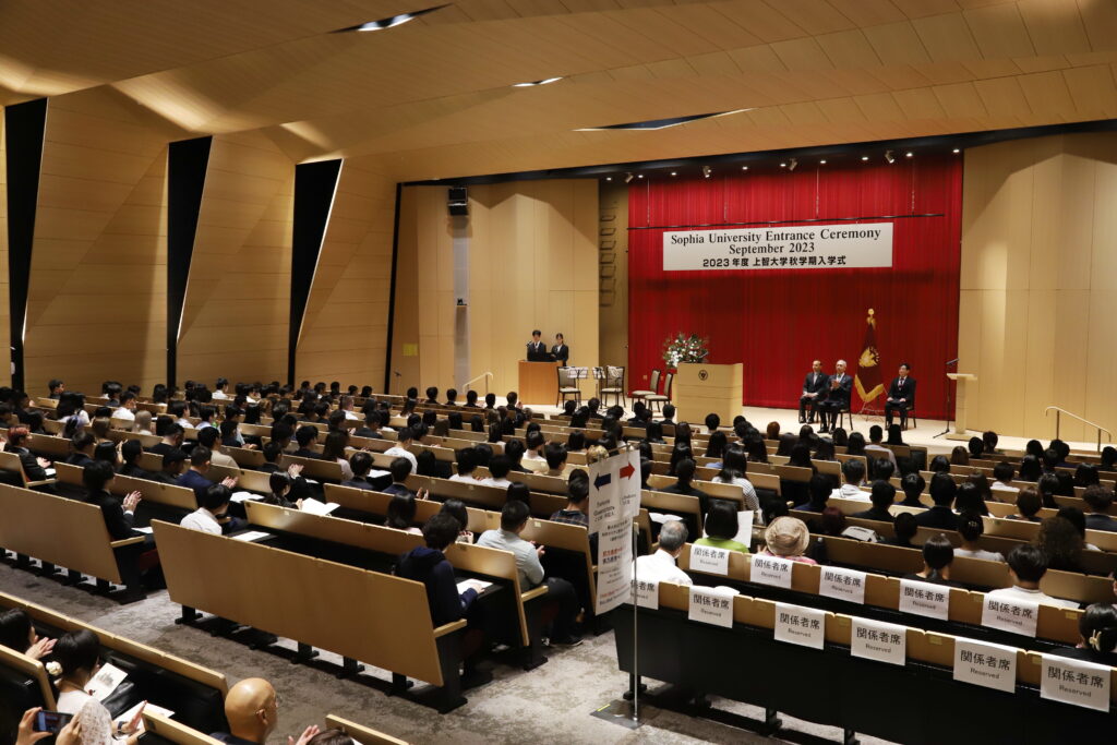 In his welcome speech, Chancellor Augastine introduced a message from a member of the International Campaign to Ban Landmines, a Nobel Peace Prize-winning organization that once visited the university, noting that “the point of studying at a university is not merely to earn a degree, but to become a person who can contribute to solving global issues. To this end, you should not only complete the curriculum and pursue your studies, but also nurture a spirit within marked by freedom, justice, compassion, and wisdom during the years spent at the university. Founded by the Jesuits, the mission of Sophia University is guided by the fundamental value of ” putting the most vulnerable first. Along with Sophia’s educational spirit of ‘For Others, With Others,’ I hope that you will make the most of your time at Sophia University.”