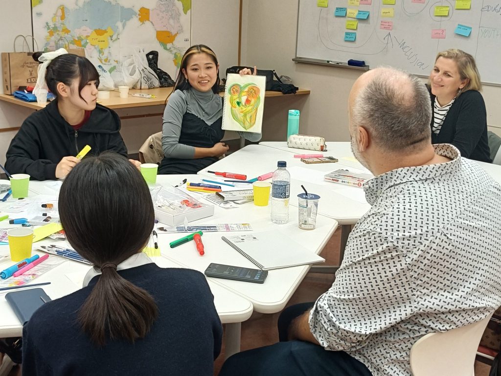 From October 28 to 30, students from Professor Taro Komatsu’s Seminar on International Educational Development (Department of Education, Faculty of Human Sciences) participated in a series of workshops on peace together with guests from Bosnia and Herzegovina — artist Mr. Muhamed Kafedžić (Muha) and Associate Professor Larisa Kasumagić-Kafedžić, an expert in intercultural education from the University of Sarajevo.