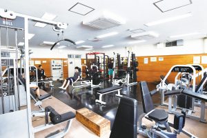 バレーボールのコートが2面とれる広さの体育館で、柔道や卓球場、武道系の練習施設も備えています。地下には25mの温水プールがあり、1年を通して利用可能です。