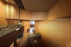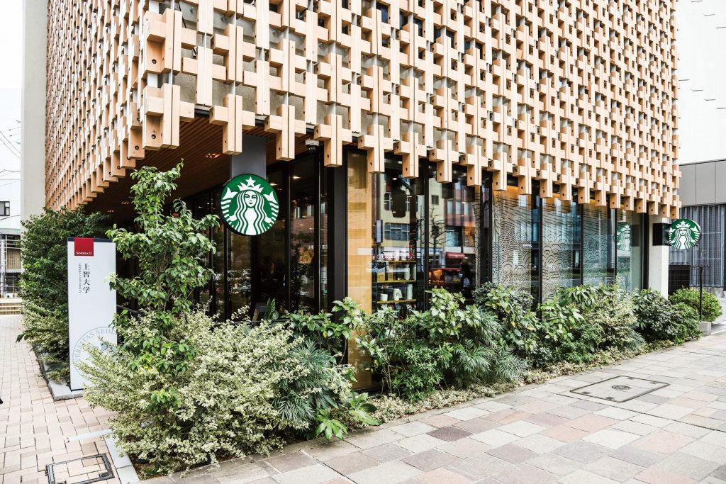 国産材を使用した木造3階建ての耐火構造。1階には一般の方も利用できるスターバックス コーヒーが併設され、2階と3階には約60人収容の教室があります。また、地域貢献活動の一環として、近隣町会が利用可能な防災倉庫もあります。