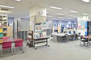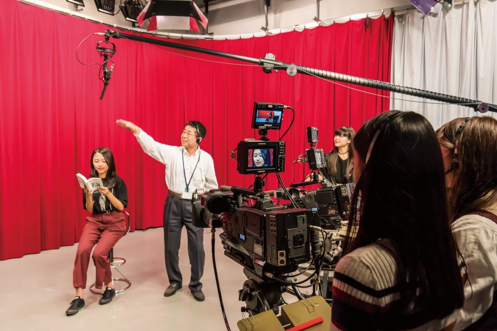 学生を支援する事務部署のほか、コンピュータールームやラウンジなど自習スペースも多く備えています。また、テレビ局と同じ機材で番組制作を行うテレビセンターを地下に設置しています。