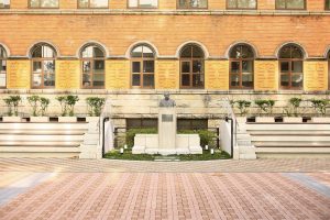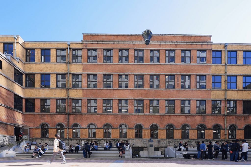 昭和7(1932)年建造。空襲にも耐え、歴史ある建物として今もその存在感を誇ります。創設当時は学長室などがあり大学の中心的な機能を果たしていましたが、現在は教室・講堂として使用されています。2024年、東京都選定歴史的建造物に選定されました。