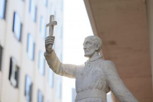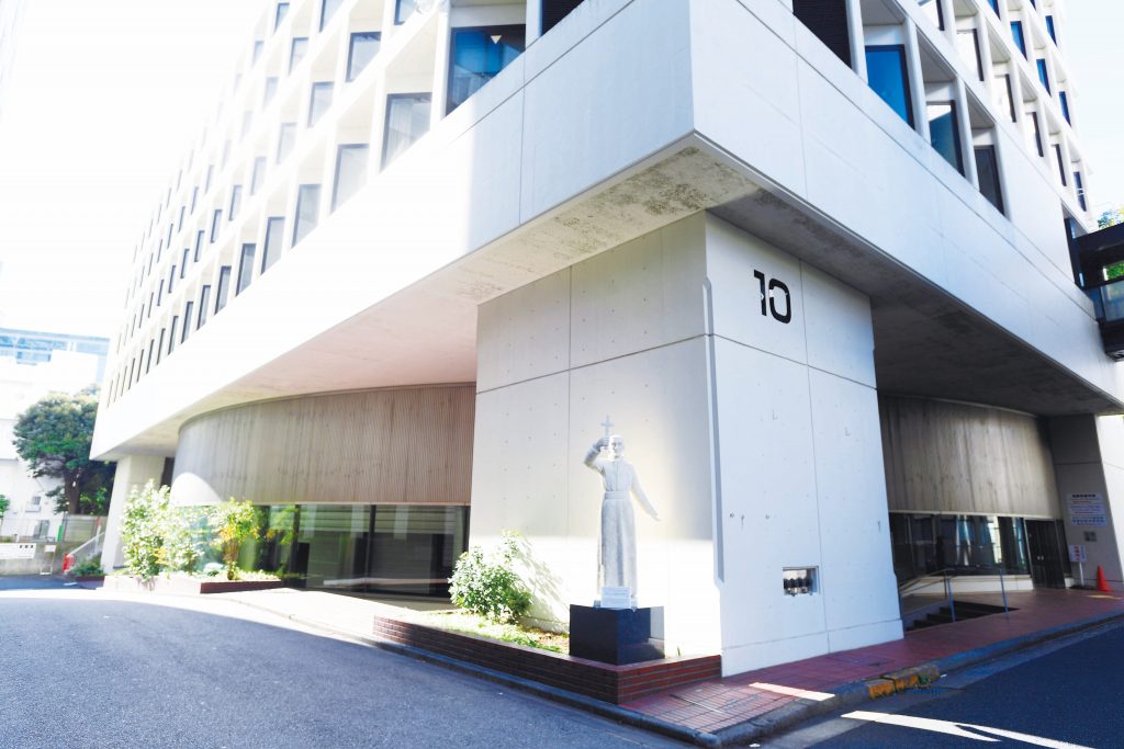 全学の言語教育を担う言語教育研究センターや800 人規模の大教室および研究室や教室を設置しており、上智大学のシンボル的な存在です。1階のエントランスには本学の歴史や取り組みを紹介・展示するスペースがあります。