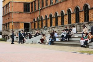 多くの学生が集う1 号館前の「S-TERRASSE(Sテラス)」は、在学生から広場の名称を募集し、約90件のなかから選ばれ命名されました。Sテラスの「S」はSophia、 Sustainability、Shareの3つを表し、学生のランドマークとして賑わっています。