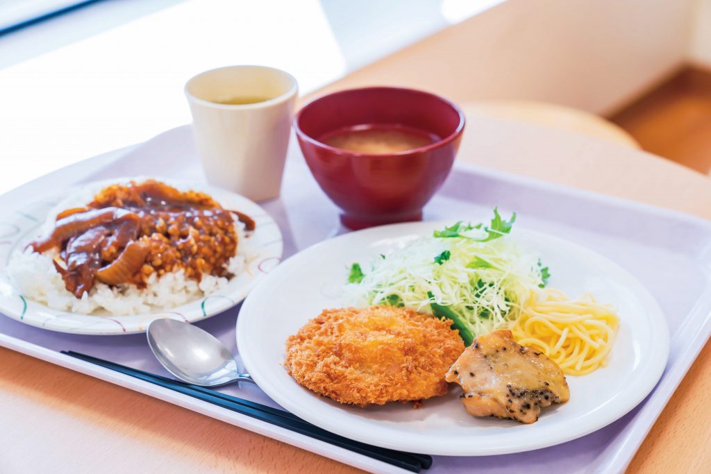 規模(約600名収容)・メニュー数ともに学内一番の学食です。定食からデザートまで幅広い品揃えがあります。また、6階には屋上テラスも併設され(267席)、天気のよい日には屋外で爽やかな青空のもとで食事をすることができます。