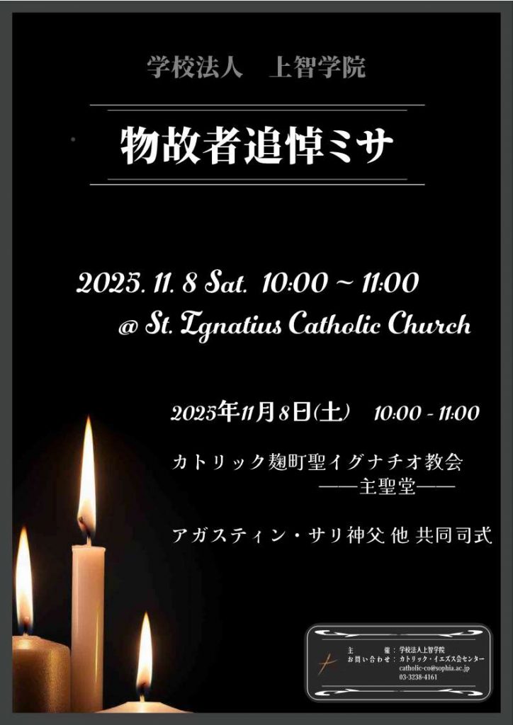 問い合わせ先上智学院カトリック・イエズス会センター ℡03-3238-4161 catholic-co@sophia.ac.jp