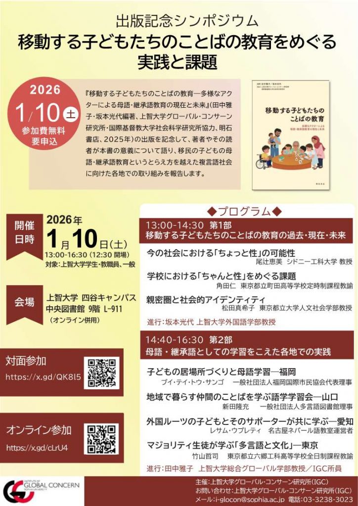出版記念シンポジウム「移動する子どもたちのことばの教育をめぐる実践と課題」