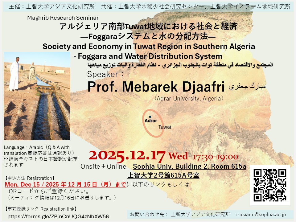 Maghrib Research Seminar アルジェリア南部Tuwat地域における社会と経済―Foggaraシステムと水の分配方法―