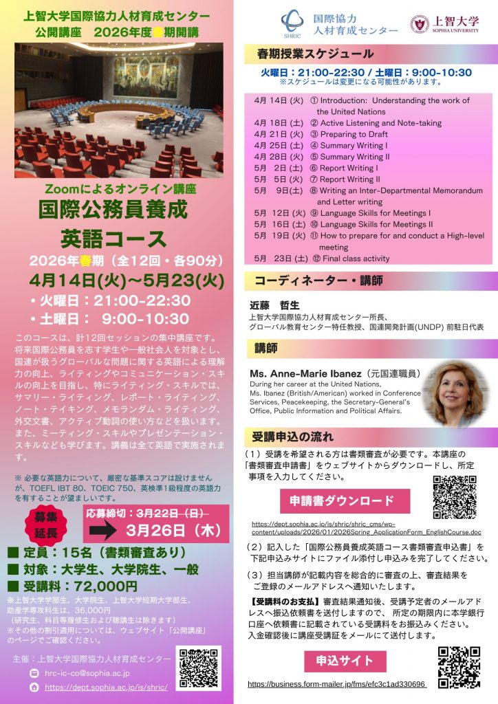2026年春「国際公務員養成英語コース」