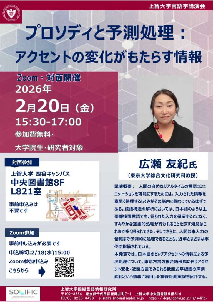 【言語学講演会】プロソディと予測処理:アクセントの変化がもたらす情報