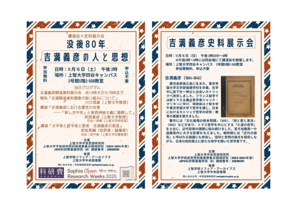 後援:上智学院ソフィア・アーカイブズ上智⼤学中央図書館