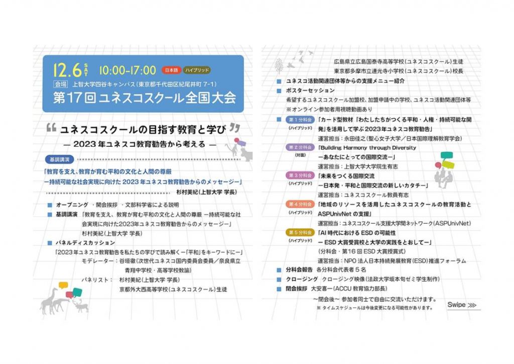 第4回ユネスコウイーク(2025.12.5から12.11)のメインイベントの一つとして、ユネスコスクール全国大会が上智大学(共催)を会場として開催されます。どなたでも参加可能です。