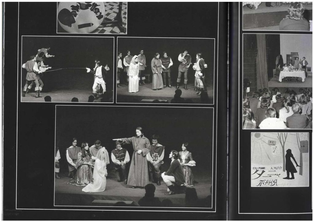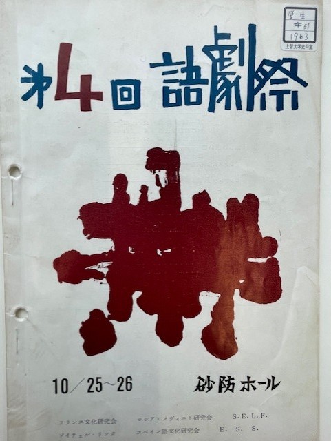 当時は英語劇、ドイツ語劇、フランス語劇、スペイン語劇、ロシア語劇、ポルトガル語劇が上演されていました。英語劇が 1970 年に語劇祭から独立し、ポルトガル語劇が 1972 年で活動を停止したため、その後は他の4語劇団体で、毎年語劇祭を開催し、意欲的な活動を行ってきました。