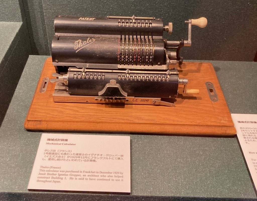 ソフィア・アーカイブズでは学内で使用されていた古い備品や用品も大切に保管しています。今回の展示ではそれら中から、タイプライターや手動計算機、電話交換機などを展示しています。使われていた時代背景や使い方などの解説を読みながらご覧いただけます。