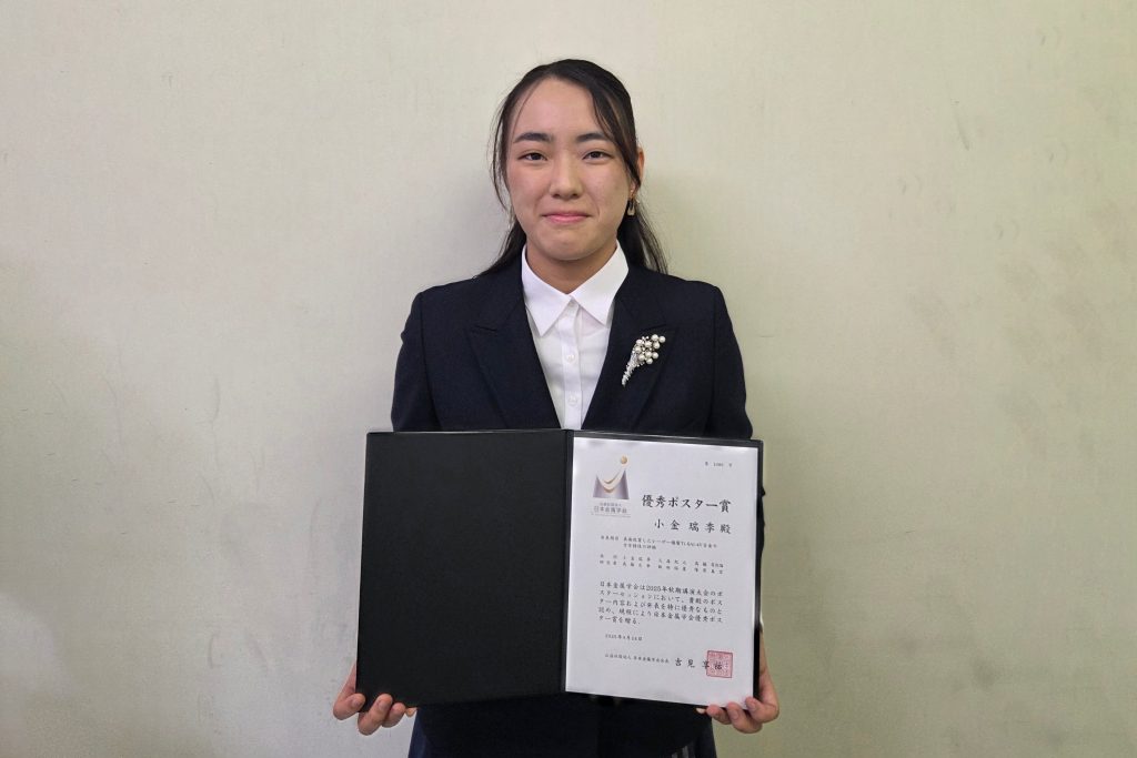 小金さんは今回の受賞に際して「この度は優秀ポスター賞に選出いただき、大変光栄に存じます。指導教員をはじめ、日頃より支えてくださった皆さまに心より感謝申し上げます。今回のポスターセッションでは、研究者のみなさまと深く議論をすることができ、大変有意義な機会となりました。この受賞を大きな励みとし、今後も仲間と共に、研究活動に取り組んでまいります。」と語っています。