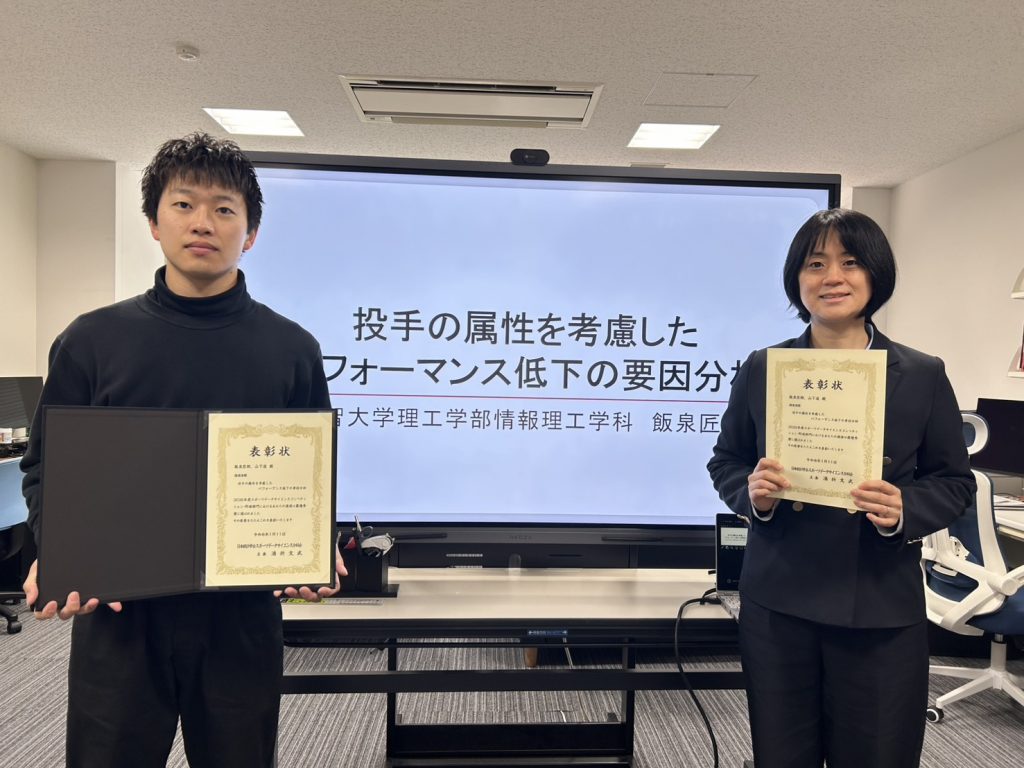 理工学部情報理工学科4年の飯泉匠朗さんが2025年度スポーツデータサイエンスコンペティション 野球部門で最優秀賞を受賞しました。