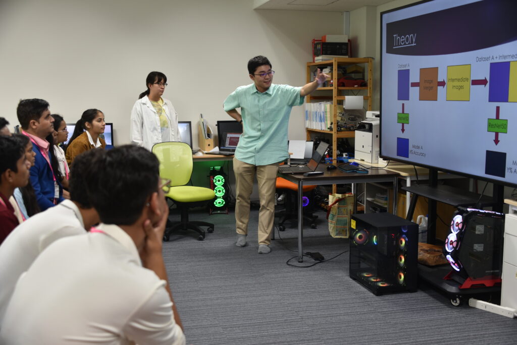 情報理工学科のゴンサルベス タッド教授による「Current Status and the Future Possibilities of AI」(生成AIの現状と今後の可能性)と題した模擬授業でも、好奇心旺盛な高校生たちが臆することなく質問する姿がたくさん見られました。