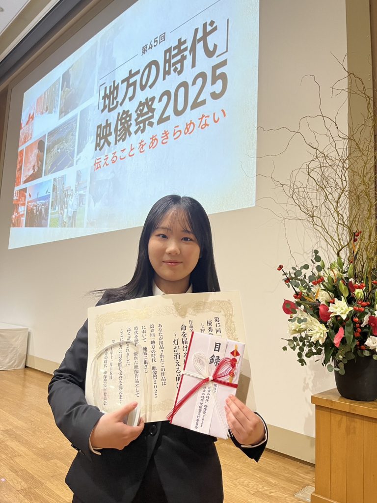 「地方から社会の今を見つめる」というコンセプトで放送局やケーブルテレビ、それに市民や大学生、高校生らが制作したドキュメンタリーの中から優れた作品を表彰する「第45回地方の時代映像祭」(大阪府吹田市の関西大学で開催)で、文学部新聞学科3年の吉田理乃さんの作品「命を届ける場所~灯が消える前に~」が優秀賞に選ばれました。同映像祭の「市民・学生・自治体部門」に応募があった86作品の中からの入賞です。上智大学の学生作品が入賞するのは9年連続で、入賞のうち上位にあたる優秀賞は昨年に続いて3年連続の快挙です。