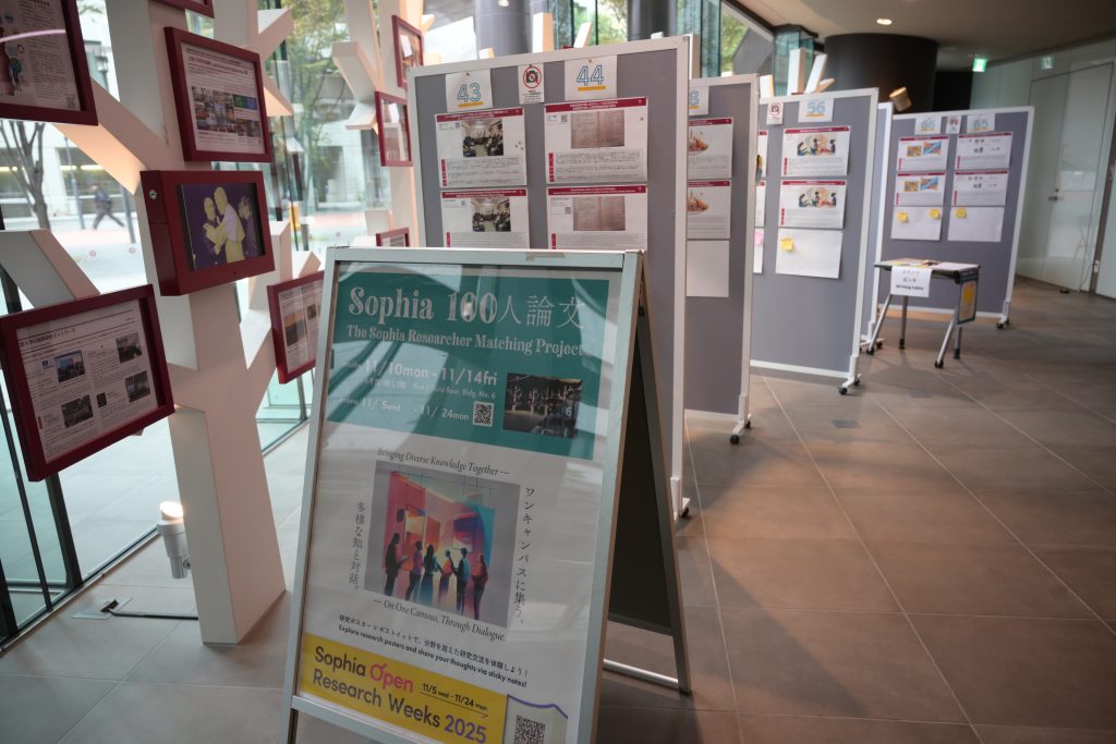 このほか、国際言語情報研究所による企画『現代言語学と否定辞の諸問題』やイスラーム地域研究所の動画配信企画『ムスリムにみるつながりの風景』などでも特別研究員、研究補助員がスピーカーを務めました。また、理工学研究科生物科学領域の『大学院1年生の研究中間発表会』では大学院生によるポスター発表が行われるなど、『Sophia100人論文』も含め、Sophia Open Research Weeksは、若手研究者の学内外への研究発表の場としても発展し続けています。