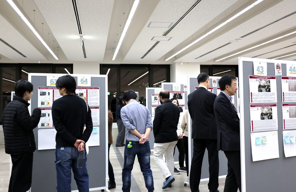 この企画は京都大学で始まり、現在では、全国の様々な大学で実施されています。本学では今回で2回目の開催で、昨年よりも会場を拡大し、6号館の1階に加え3階のフロアでも展示を行いました。会期中は多くの来場者が足を止め、ポスターに見入る姿が見られました。今年は新たにオンラインサイトも立ち上げ、Web上での交流も促進したほか、ポスター参加者同士の交流会も対面で実施しました。文理を横断する本学の幅広い研究分野を発信し、学際研究を積極的に推進する場として、徐々に規模を拡大しています。