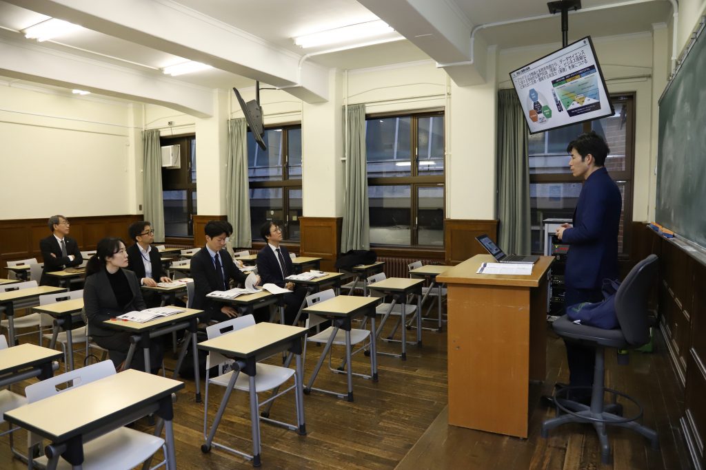 さらに、本学で展開する応用データサイエンス学位プログラムも紹介し、深澤佑介准教授からクマとの遭遇リスクをAIで予測するモデルの開発など社会課題の解決に資する教育・研究について紹介し、関心を示していただきました。