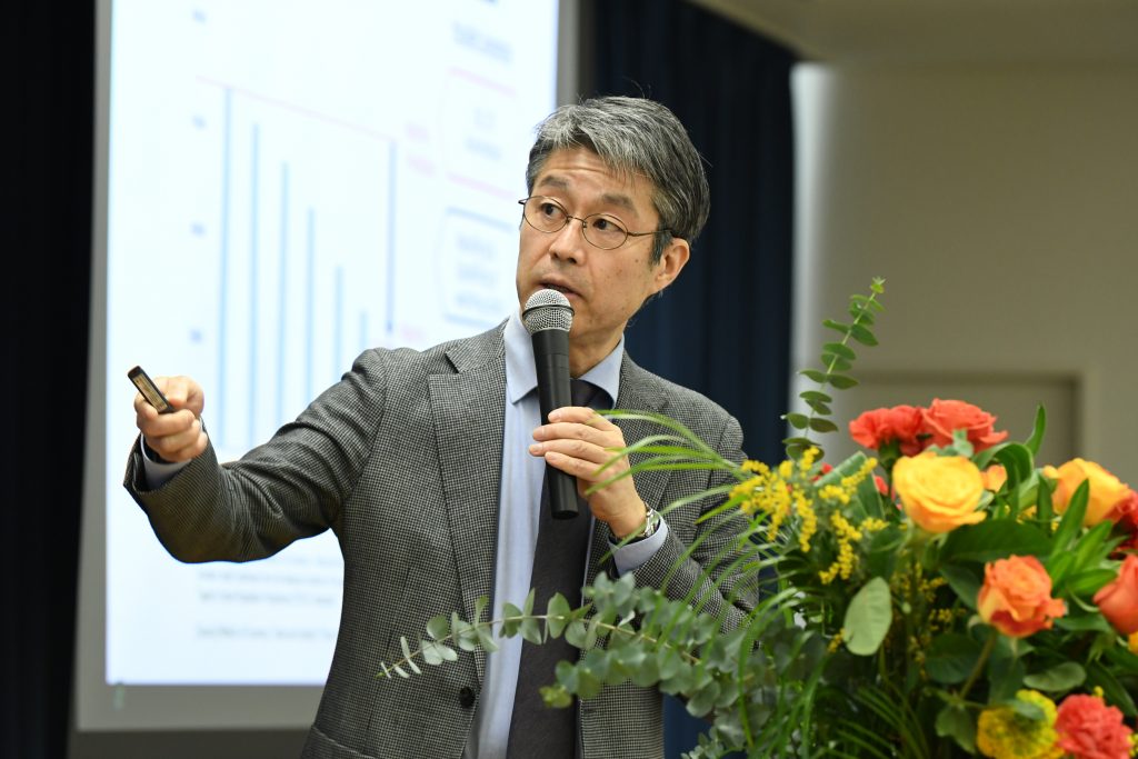冒頭の杉村美紀学長による開会挨拶に続き、基調講演として文部科学省高等教育局佐藤邦明参事官(国際担当)より、日本の高等教育機関の国際化の取組や課題、大学の世界展開力強化事業採択プログラムに期待することについて、ご講演いただきました。