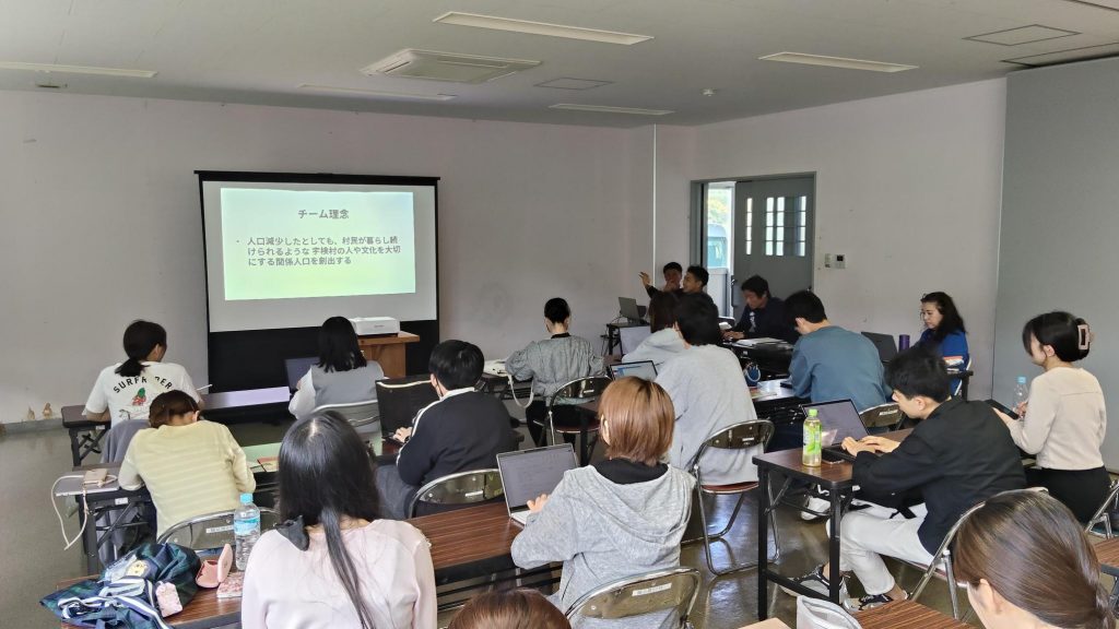 また、本学大学院地球環境学研究科の織 朱實教授によるSDGsワークショップでは、在学生に加え宇検村役場職員や日本航空社員らも参加。プロジェクトを通じ、それぞれが仮の国の代表者として世界(経済・社会・環境の3要素)の変化や持続可能性について考えました。