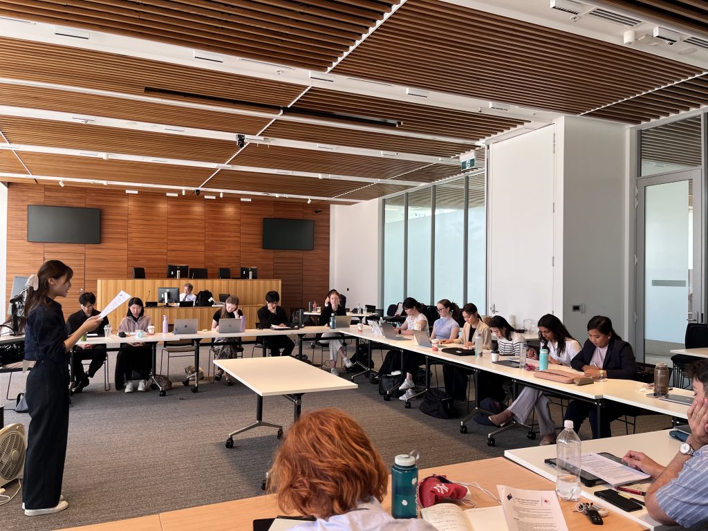 サミット期間中は、両学法学部および上智大学特任教授を合わせた7名の教授陣からレクチャーを受け、多様な視点でテーマについてのインプットを深めると同時に、熱心な質疑応答や学生間でのグループディスカッションを通して両国における社会課題の洗い出しや意見交換を行い、コミュニケ作成に向けての準備を進めました。