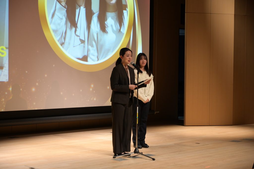 最後に、司会を務めた学生職員の八田瑞希シルバさん(理工学部物質生命理工学科グリーンサイエンスコース4年)は「本企画がサステナビリティを特別なものではなく、自分自身の立場や選択と結びつけて日常に向き合うものだと認識するきっかけとなったら嬉しいです」と締めくくりました。併せて、今後も多様性を尊重しながらサステナビリティに関する取り組みを推進していくことが推進室の方針であることを述べ、表彰式は盛況のうちに閉会しました。