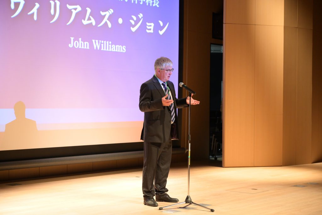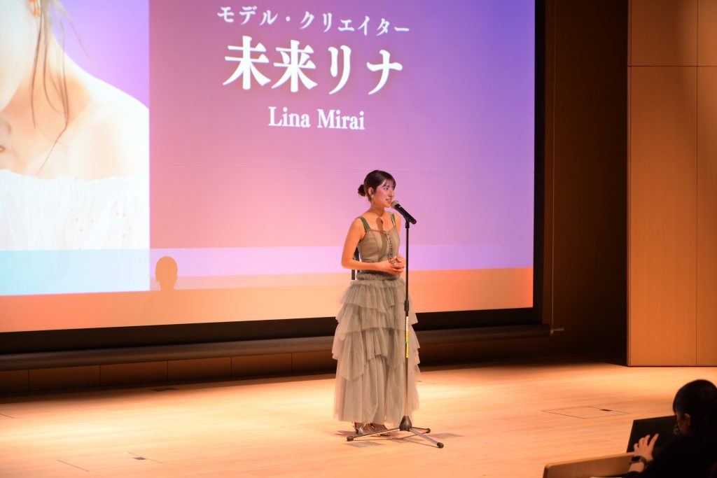 審査員からは、それぞれのサステナビリティに対する思いや、映像作品で伝える力、多様な文化背景から生まれた視点の豊かさなど、作品ごとに込められた熱意や創意工夫について高い評価が寄せられました。当日は審査員代表として、本学外国語学部英語学科長のウィリアムズ・ジョン先生と、サステナブルな生活を発信するモデル・クリエイターの未来リナ氏が登壇し、それぞれの立場から総評を述べました。