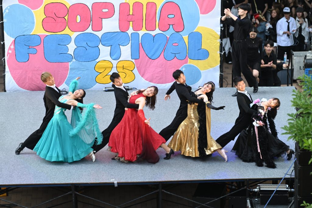1日の前夜祭は、7号館前の特設会場で行われ、応援団チアリーディング部EAGLESによる開幕宣言の後、上智ナンバー1の歌声を決める「歌うま王決定戦」や課外活動団体のダンス、ライブの他、学生がモデルとして出演するファッションショーなど、熱気溢れるパフォーマンスが繰り広げられました。前夜祭のクライマックスでは、若年層を中心に人気を集めるバンド「Conton Candy」が特別ライブを行い、ソフィア祭の開幕を華やかに彩りました。