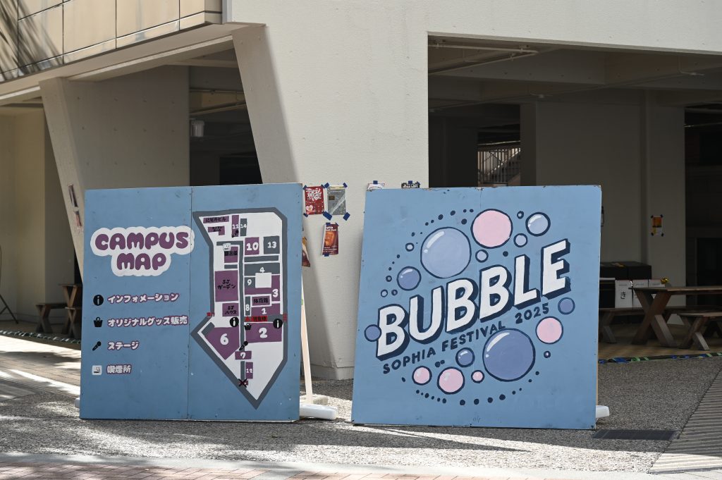 今年のテーマは〝BUBBLE〟。テーマに込められた「学生一人ひとりが色とりどりの泡のように個性を輝かせ、自由に浮かびながらも、互いに集まることで美しく温かな景色を生み出したい」というソフィア祭実行委員会の想いのとおり、キャンパスは弾けるような笑顔と活気に満ち溢れていました。