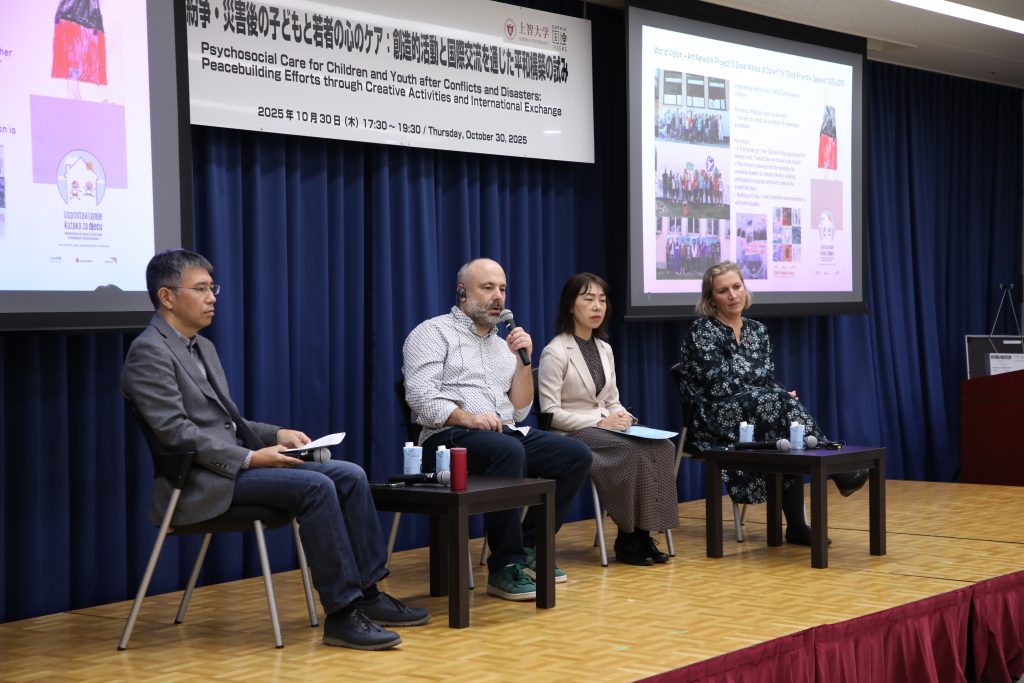 30日、ウクライナ、ボスニア・ヘルツェゴヴィナ、日本の事例を共有しながら、紛争・災害後の子どもと若者の心のケアを考えるシンポジウムを開催しました。世界では今も紛争や災害が続き、深い心の傷を残しています。本シンポジウムでは、紛争中および紛争・災害を経験した3か国から専門家を招き、創造的活動や国際交流を通じた持続的な平和貢献の可能性を探りました。