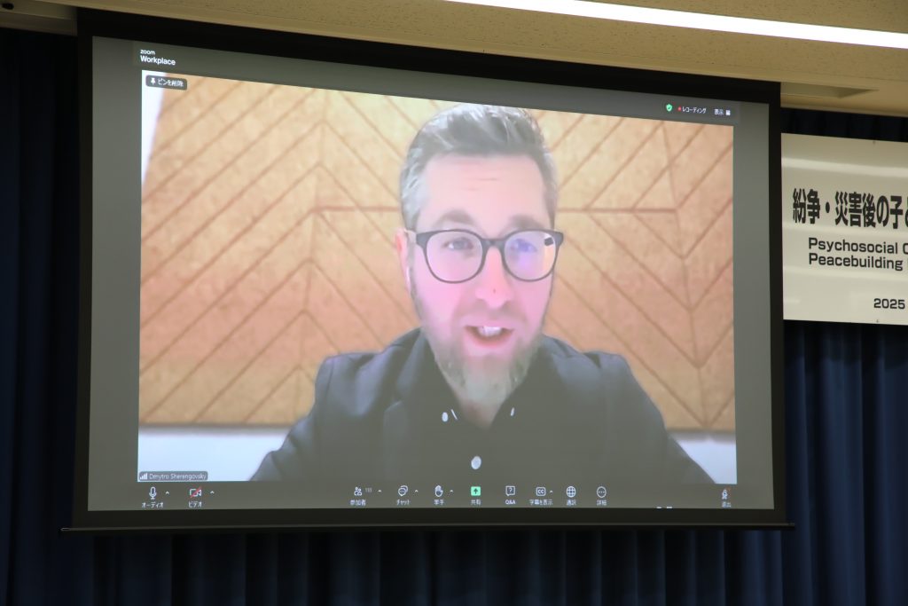 まず、ウクライナ・カトリック大学副学長のドミトロ・シェレンゴフスキー教授、サラエボ大学のラリサ・カスマギッチ-カフェジッチ准教授が基調講演を行いました。オンラインで登壇したシェレンゴフスキー教授は、戦争下における若者の心理社会的ニーズを説明し、大学の多層的な対応事例を紹介。「心理社会的支援は軽視されがちだが、放置すれば国の基盤が揺らぐ。子どもがトラウマを乗り越え、再生の担い手としての自覚を育むことが大学の使命である」と語りました。