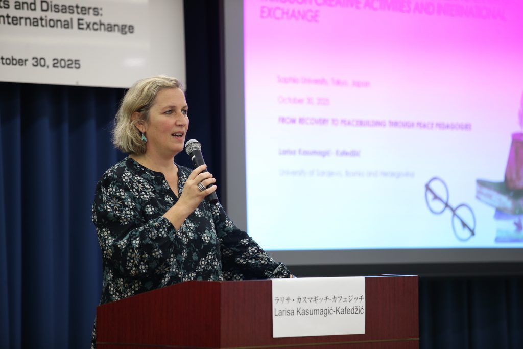 一方、カスマギッチ-カフェジッチ准教授は、母国の教育システムにおける歴史的変遷を述べたうえで、「戦争の影響は終結した後も続くからこそ、トラウマに配慮した平和教育が不可欠。教育が平和構築に果たす役割を無視することは、負の連鎖に加担すると同義だ」と、平和教育の必要性を強調しました。