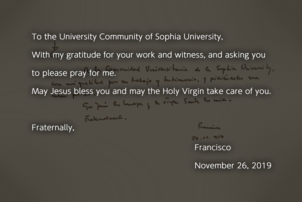 Since Pope Francis’s election in 2013, we had a number of exchanges with the Pope on various occasions. On November 26, 2019, during his stay in Japan, we were able to welcome Pope Francis to our university.