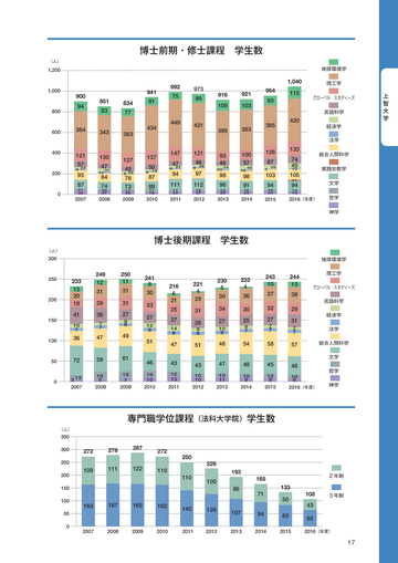 学校法人上智学院が設置する機関(高等教育部門、中等教育部門、法人部門)に関する 2007~2016 年度までのデータを掲載